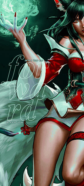 born a vesanilied down hoping to die when she accidentally killed her lovershe did not move long enough for the moss to swallow her, the earth consuming herher time in the earth was spent becoming one with runeterraahri the vesani died and a guardian spirit (kumiho) wearing her flesh was bornbasically i retconned the garden of forgetting and everything afterthis is why ahri has two very different reputations: a ravenous monster and a benevolent protector